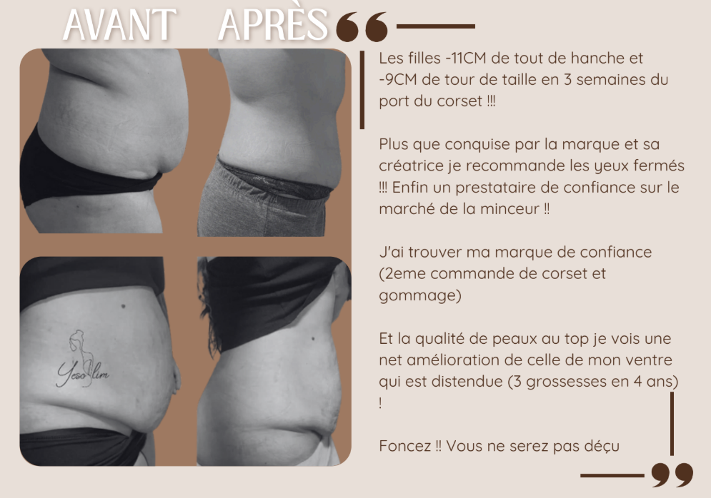 J’ai vu une différence incroyable en seulement deux semaines, le corset est confortable et vraiment efficace.
